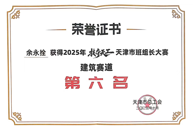 此次佳績是中冶天工“以賽促學、以賽促訓”人才培養(yǎng)機制的生動成果。下一步,公司工會將進一步系統(tǒng)梳理參賽經(jīng)驗,通過開展“優(yōu)秀班組長經(jīng)驗分享會”“數(shù)字孿生技能集訓”等活動,發(fā)揮獲獎選手的示范引領作用,不斷將賽事中的先進理念轉化為班組管理成效,同時持續(xù)深化產(chǎn)業(yè)工人隊伍建設改革,扎實推動一線管理人才能力與公司高質(zhì)量發(fā)展需求同頻共振,為天津經(jīng)濟建設與全國“紅旗杯”賽事備戰(zhàn)貢獻更多天工力量。